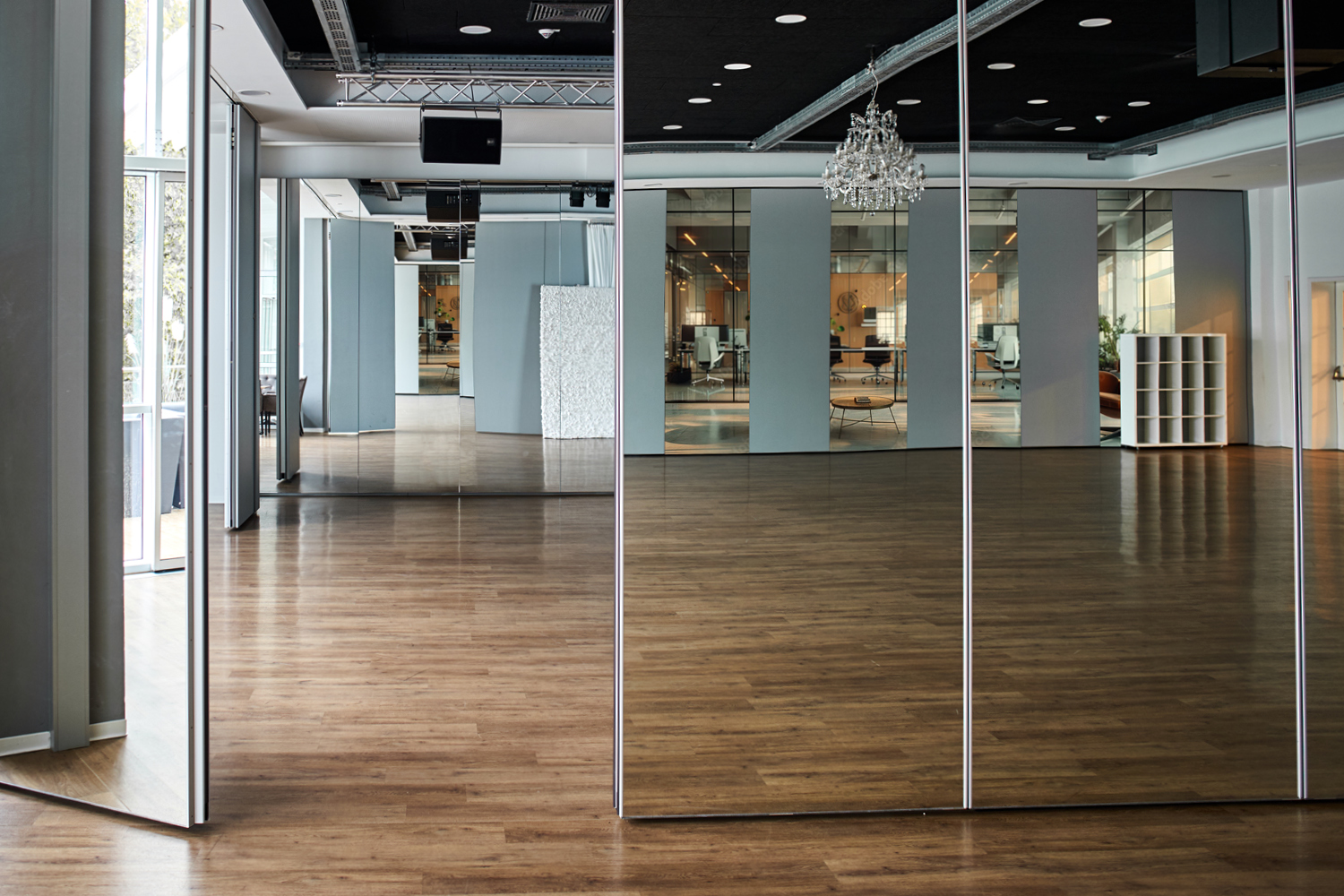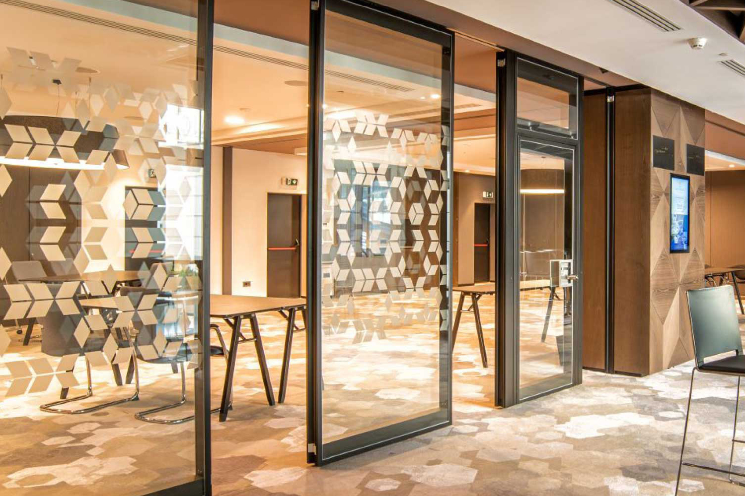 SmartGlide sets standards in safety: the TÜV seal of approval confirms tested quality. Integrated monitoring recognises obstacles, stops swinging movements and reverses in a controlled manner. Retaining systems secure each element permanently, while dual motors move quickly and quietly without disturbing what is happening in the room.