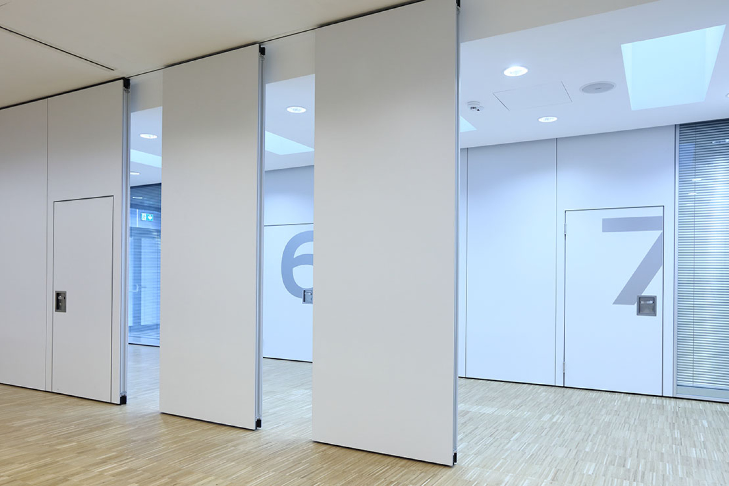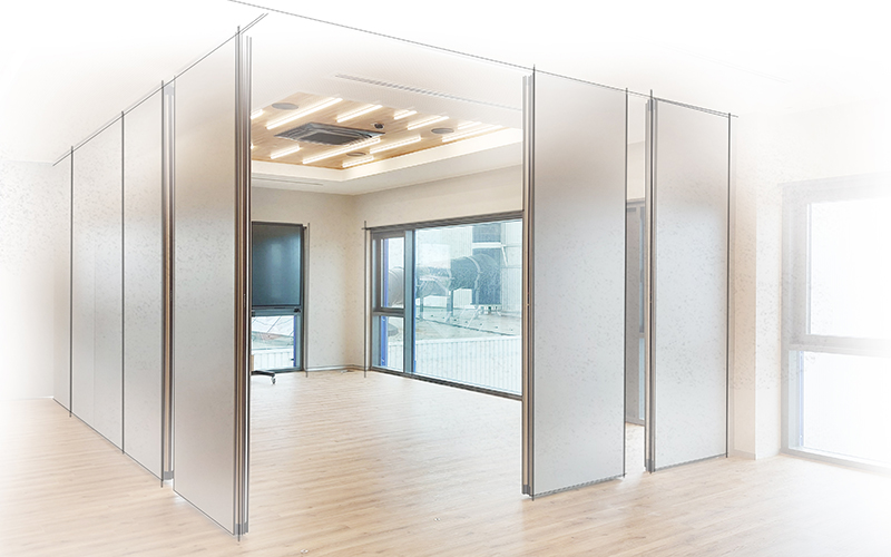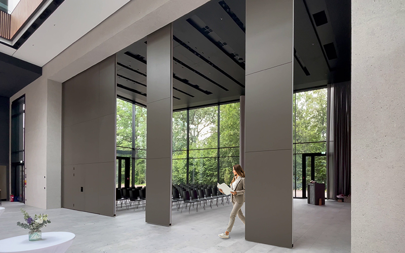 SmartGlide incorporates all the comfort features of the tried-and-tested ComfortDrive system: using a touchscreen or building automations, the elements move quickly to preset positions, stop in front of obstacles thanks to safety sensors, and close and open automatically. This creates a flexible room structure that supports operators and shortens process times.